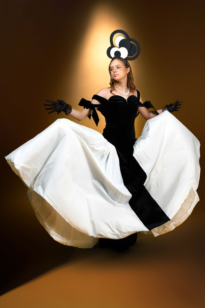 The hair and makeup blend theatrical drama with editorial sophistication. Together with the vibrant red outfit, the look challenges traditional beauty norms, presenting a fearless identity that captures attention and inspires dialogue. This concept plays on the themes of power, mystery, and individuality, perfect for an editorial collaboration that seeks to push boundaries.